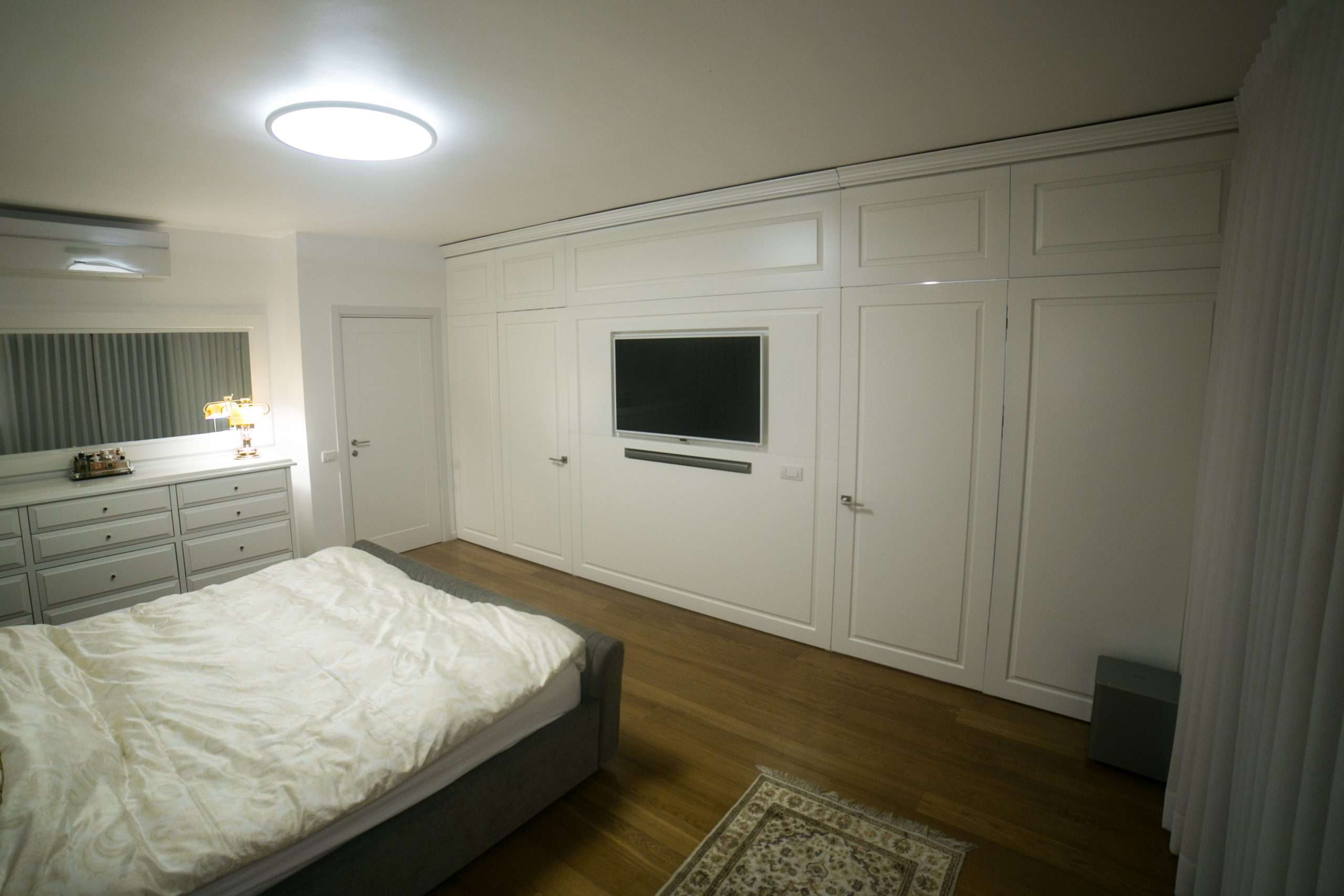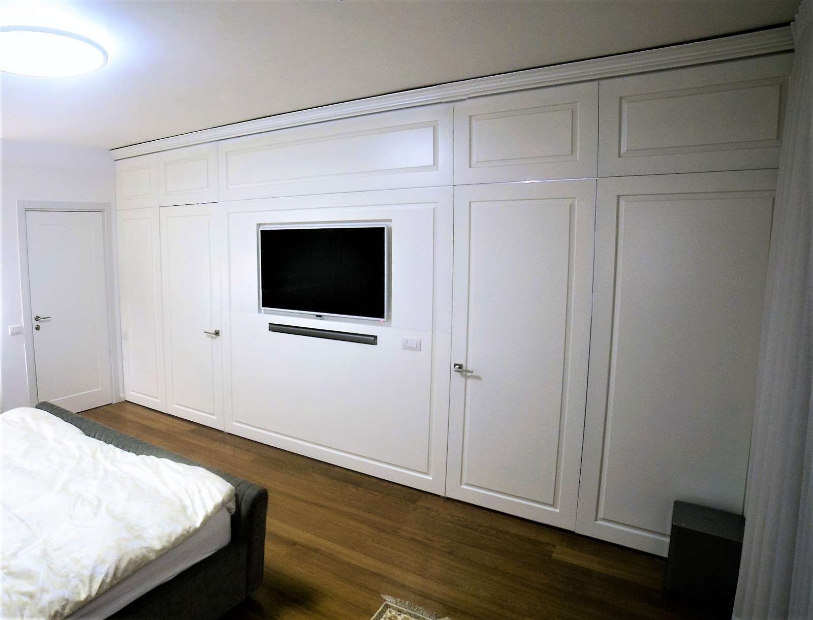 נתבקשנו על ידי האדריכל ליצור חיפוי קיר בסגנון פרובנס בחדר שינה שיתן מענה לt.v המידיה החשמל שיהיה מעוצב אם הדלתות כניסה לחדר אמבט ולחדר ארונות.