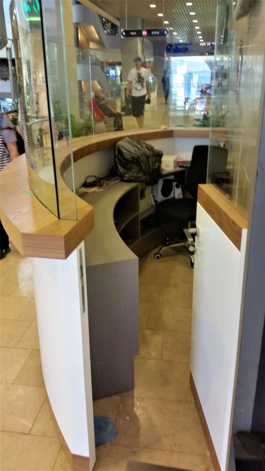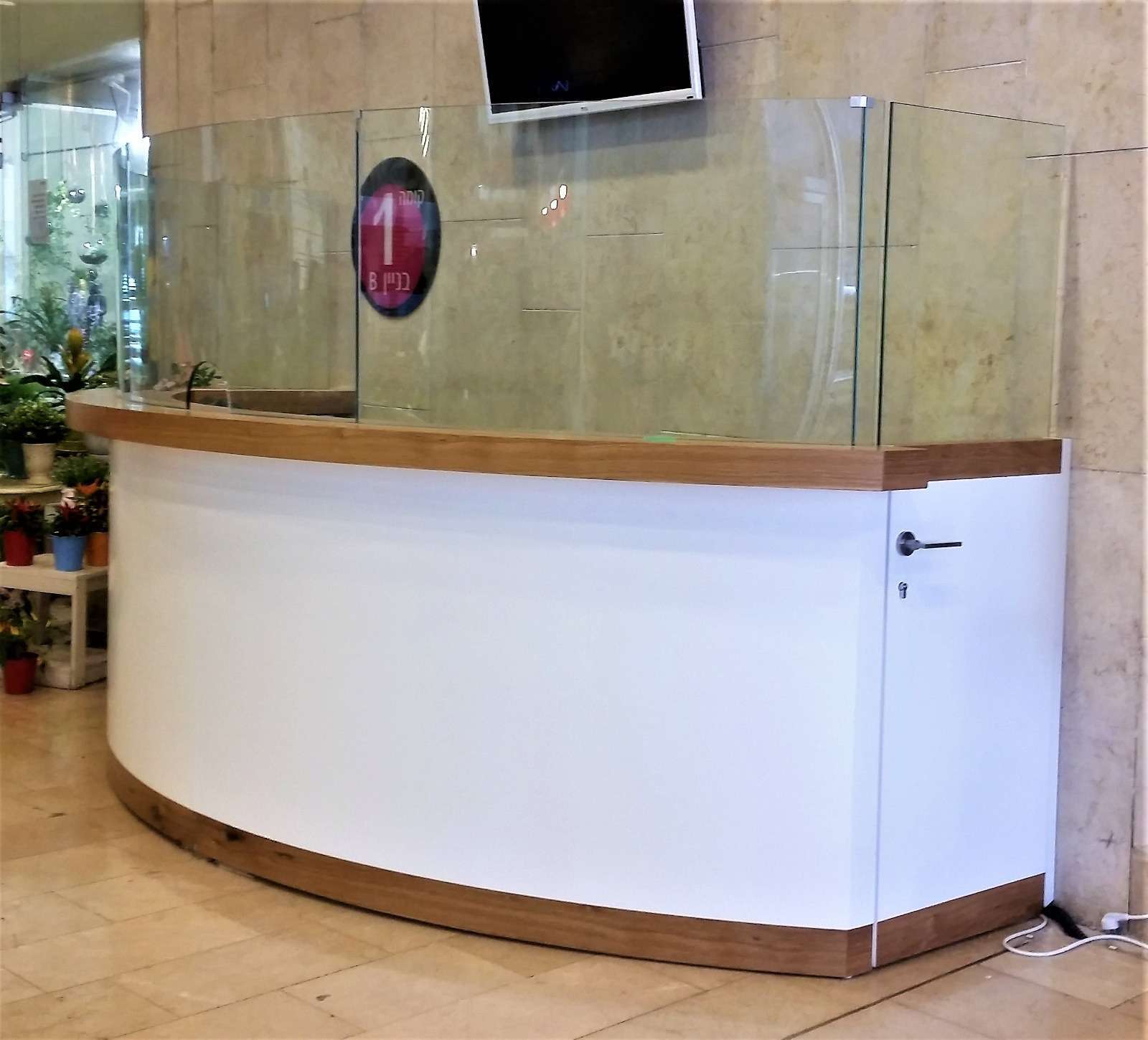 בפרויקט זה, יצרנו דלפק קבלה ייחודי עבור דיזנגוף סנטר, אשר משלב דלת כניסה עם נעילה לכניסה מאובטחת, לצד דלפק חוץ עם זכוכיות מעוגלות בכיפוף, המעניקות לעיצוב מראה מודרני ואלגנטי.